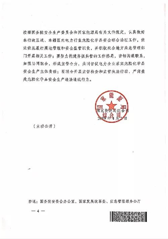 二是全面排查,堵塞危險化學品安全管理漏洞,各省級政府電力管理等有關部門、各派出能源監管機構要及時梳理分析本行政區域、本轄區內電力行業危險化學品安全狀況,有針對性地提出風險防控措施意見;