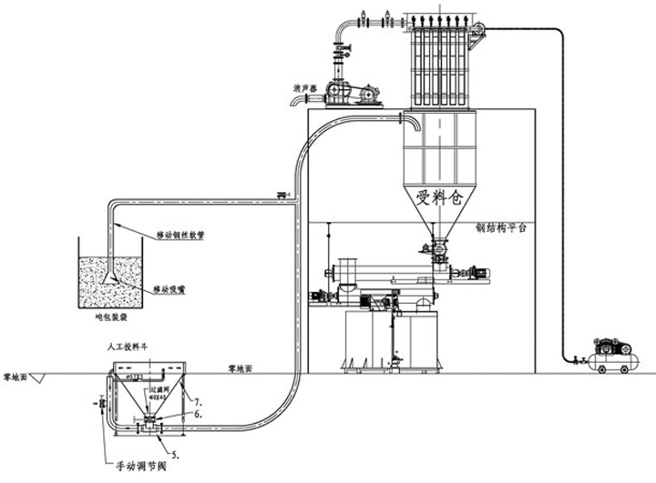 1、在負壓作用下,該物料易于吸入,料斗可打開,連續進料、輸送。