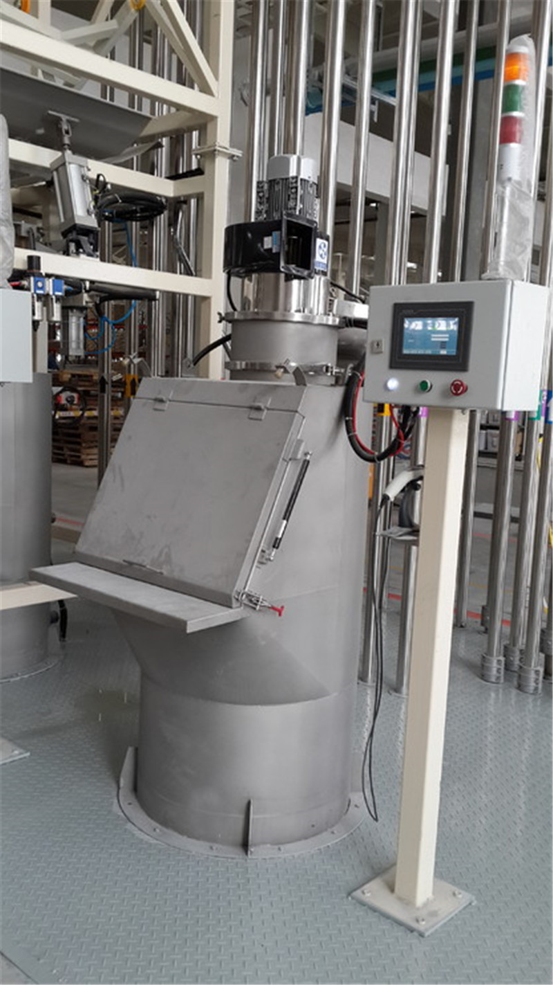 - 產品亮點:人體工學設計,投料舒適不費力,有效控制投料過程中的粉塵飛揚。并具備脈沖反吹功能,延長過濾設備使用壽命。起到改善車間環境,降低投料勞動強度,減少原料浪費的作用。